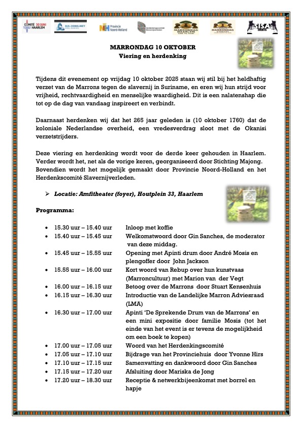 Marrondag Herdenking en Viering 10 oktober 2025